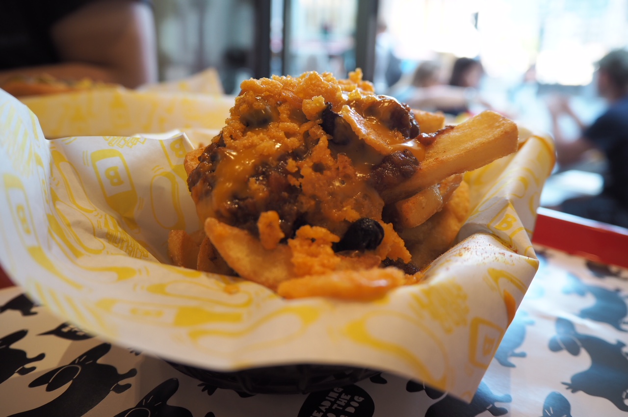 Zamówiłam „The moody Mexican” dostałam koszyczek świetnych frytek z chili con carne, sosem serowym i chipsami z cheddara. Pycha!