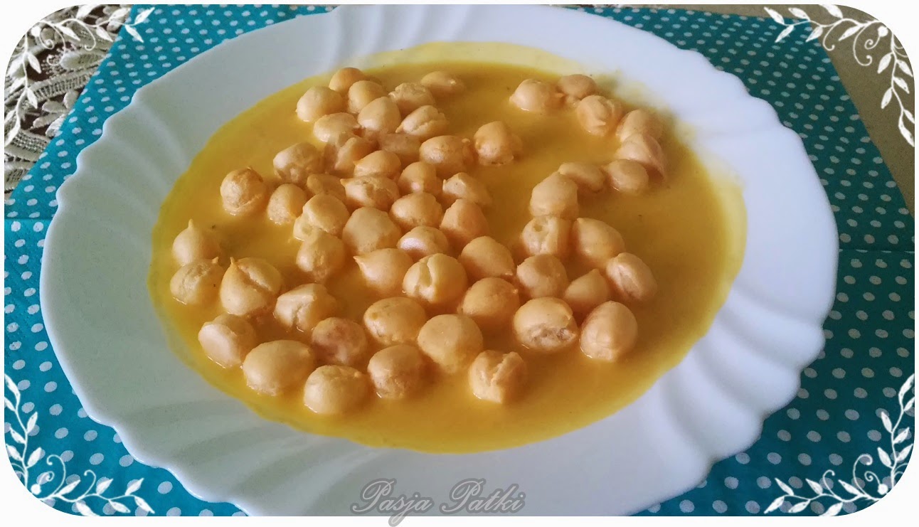 Dzisiaj kolejna potrawa zainspirowana książką Anny Starmach "Pyszne 25", czyli zupa dyniowa z kurczakiem. Jednak w mojej wersji kurczaka zamieniłam na groszki ptysiowe. Nic tak nie poprawia nastroju w szary i ponury dzień jak słońce na talerzu :) Delikatny i kremowy smak dyni z mlekiem kokosowym w połączeniu z ostrzejszym smakiem imbiru.