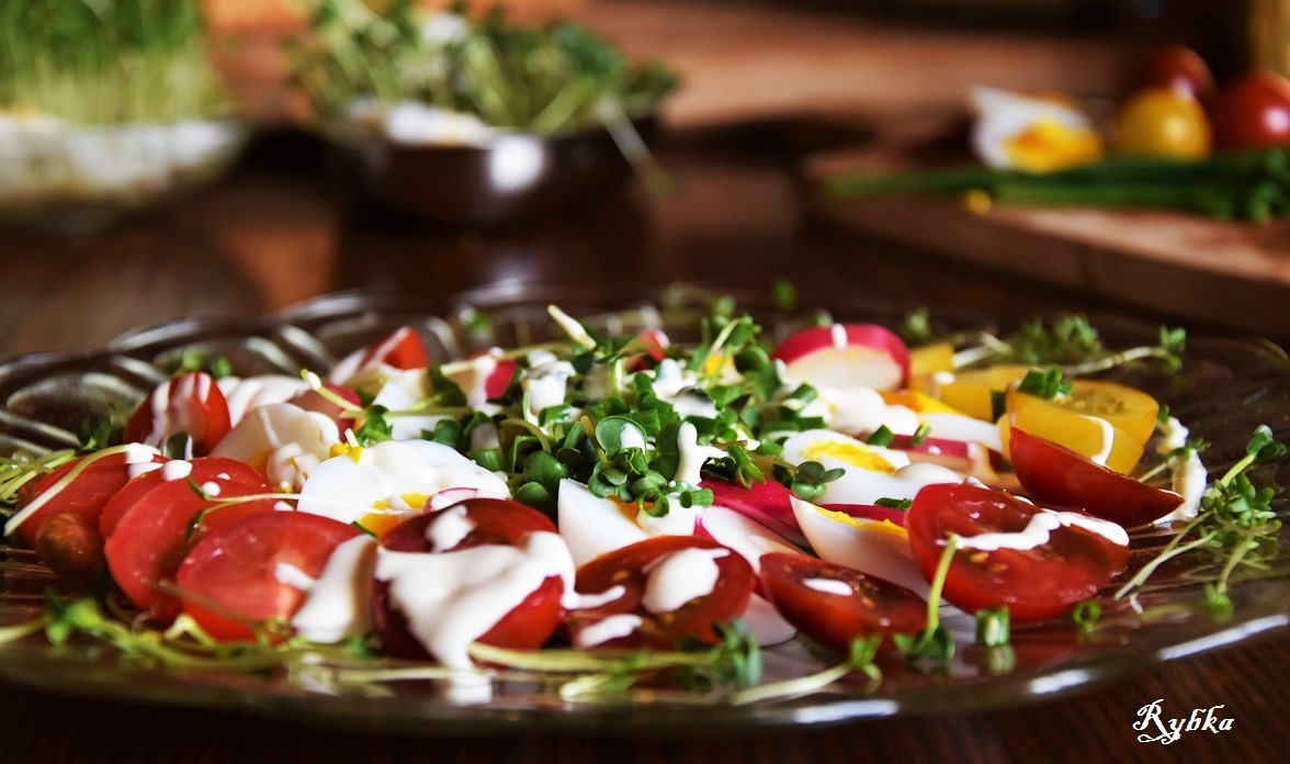 Szybka i pyszna wiosenna sałatka ze szczypiorkiem, szynką, serem żółtym, jajkami i kukurydzą oraz dodatkiem sosu majonezowego pod pierzynką z rzodkiewkiCzytaj więcej »