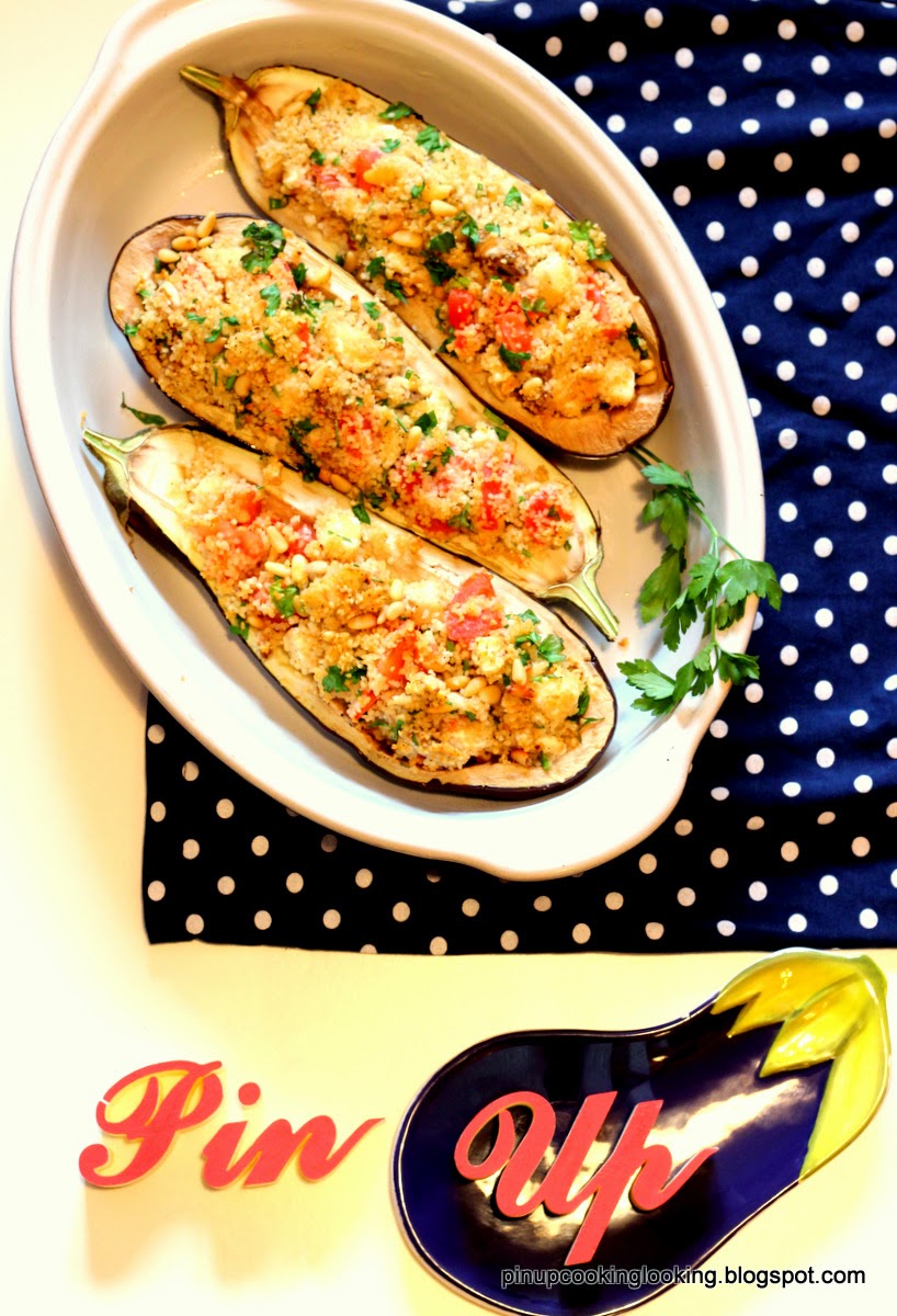 Z góry przepraszam, że tak późno pojawia się przepis na bakłażany, ale naprawdę ostatnio jestem tak zabiegana...niestety problemy zdrowotne nie pozwalają mi się skupić na gotowaniu. Jednak udało mi się znaleźć chwilkę i obiecany wpis na bakłażany już się pojawia.SKŁADNIKI: 2 OSOBY2 średnie bakłażany3/4 szklanki kuskus - ziarno2 średnie pomidory2 łyżki oliwy z oliwek100g sera fetaorzeszki pinii - garść świeżo posiekana pietruszka - naćsól i pieprz