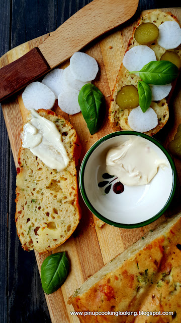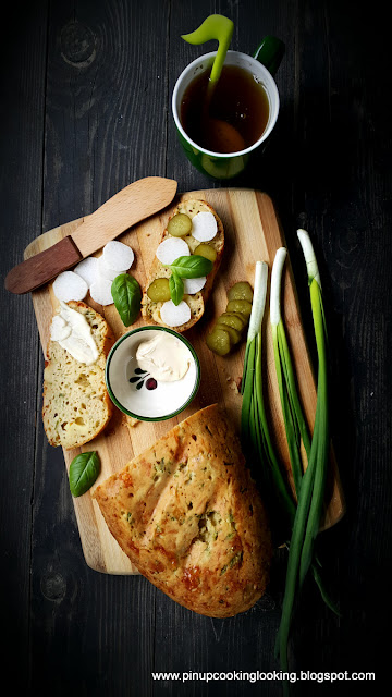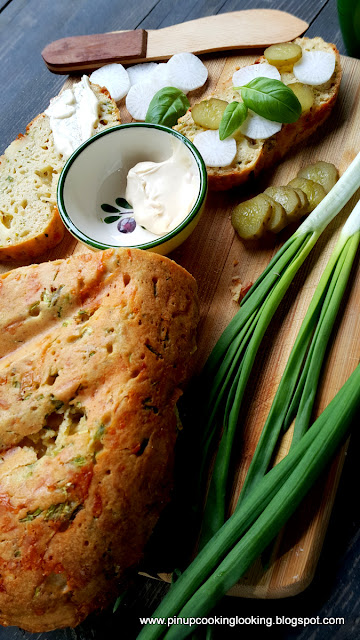 O kurczaki jak dawno mnie tu nie było....jakoś Kochani nie mam kompletnie czasu ( stara śpiewka ) na pisanie postów ...mam tyle zaległych przepisów, ale naprawdę nie wiem kiedy coś skrobnąć. Wieczorami jak Martynka zaśnie marzę już tylko o jakiś fajnym serialu albo czytam kulinarną gazetę. Teraz jeszcze zaczynamy remont domu i w ogóle czasu brak...a już niedługo wracam do pracy mam nadzieję...Dzisiaj mam dla Was przepis na pyszny chlebek, który robi się kilka minut tak naprawdę a smak ma obłędny zwłaszcza dla fanów serów...z dodatkiem białej rzepy majonezu oraz ogórka kiszonego smakuje wybornie polecam.Przepis pochodzi z magazynu PYSZNE