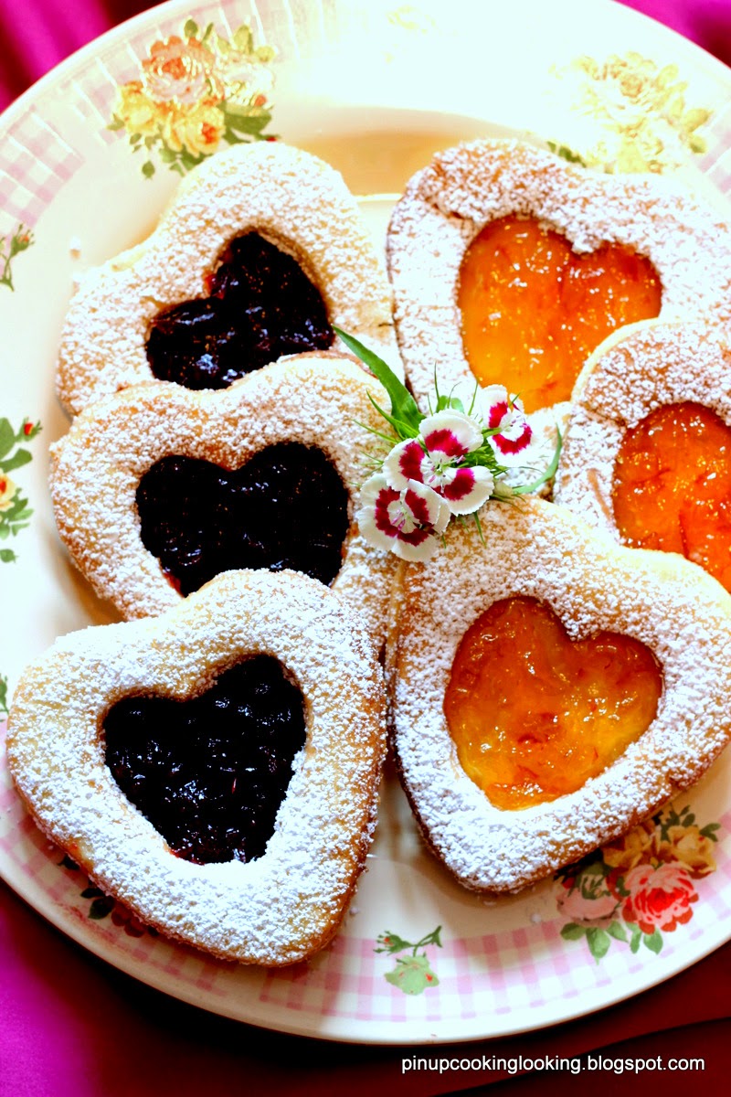 Posmarować ciastka konfiturą ostrożnie docisnąć ciastkiem w wyciętym serduszkiem.