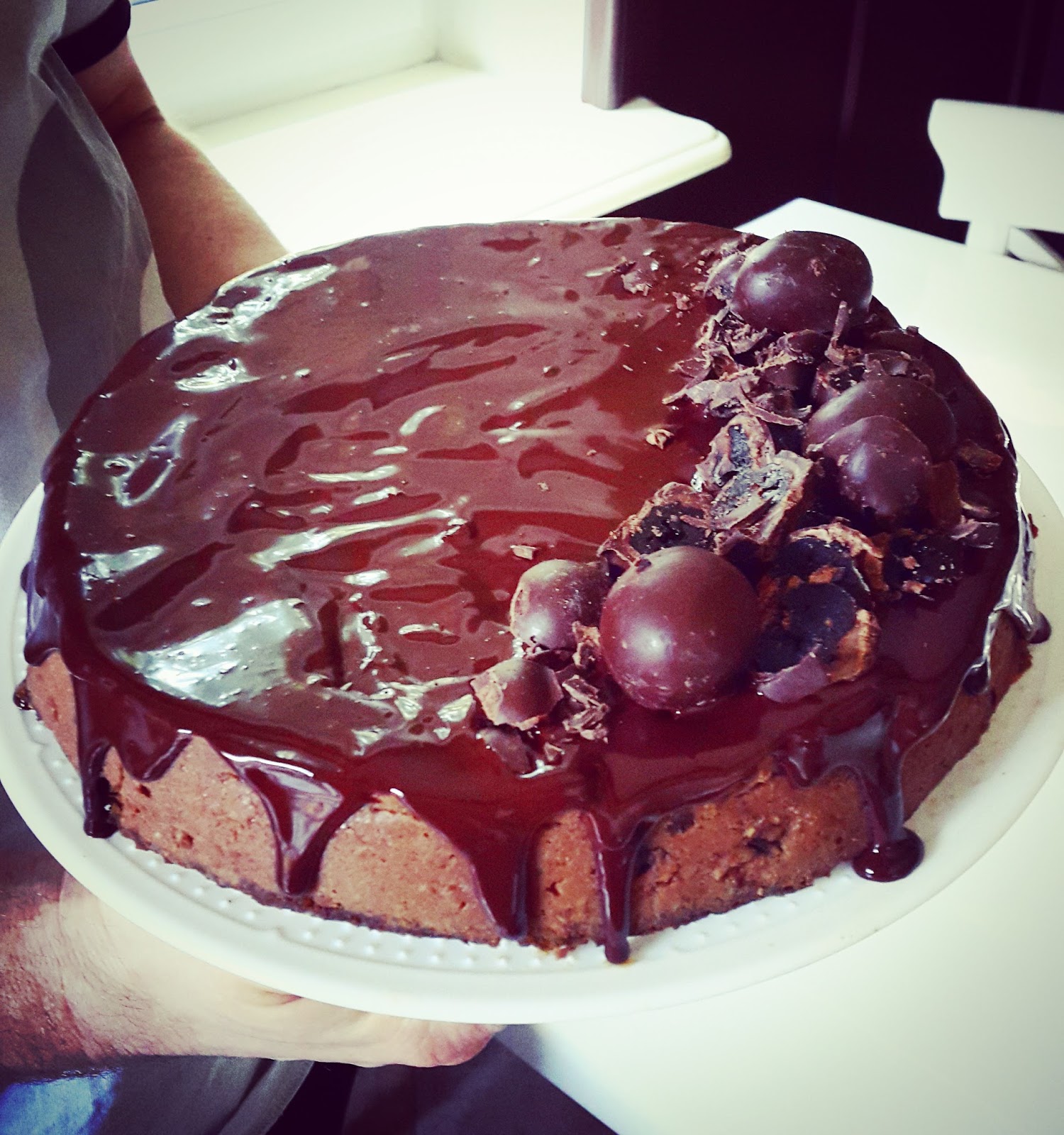 Dekorujemy wedle uznania pozostałymi śliwkami w czekoladzie.