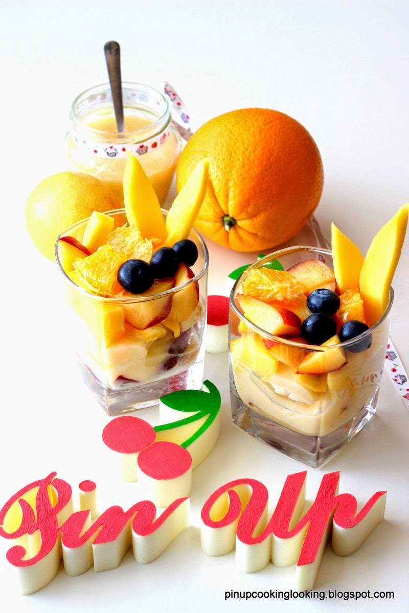 Owoce kroimy na małe kosteczki i dekorujemy szklankę wedle uznania przekładając kremem.