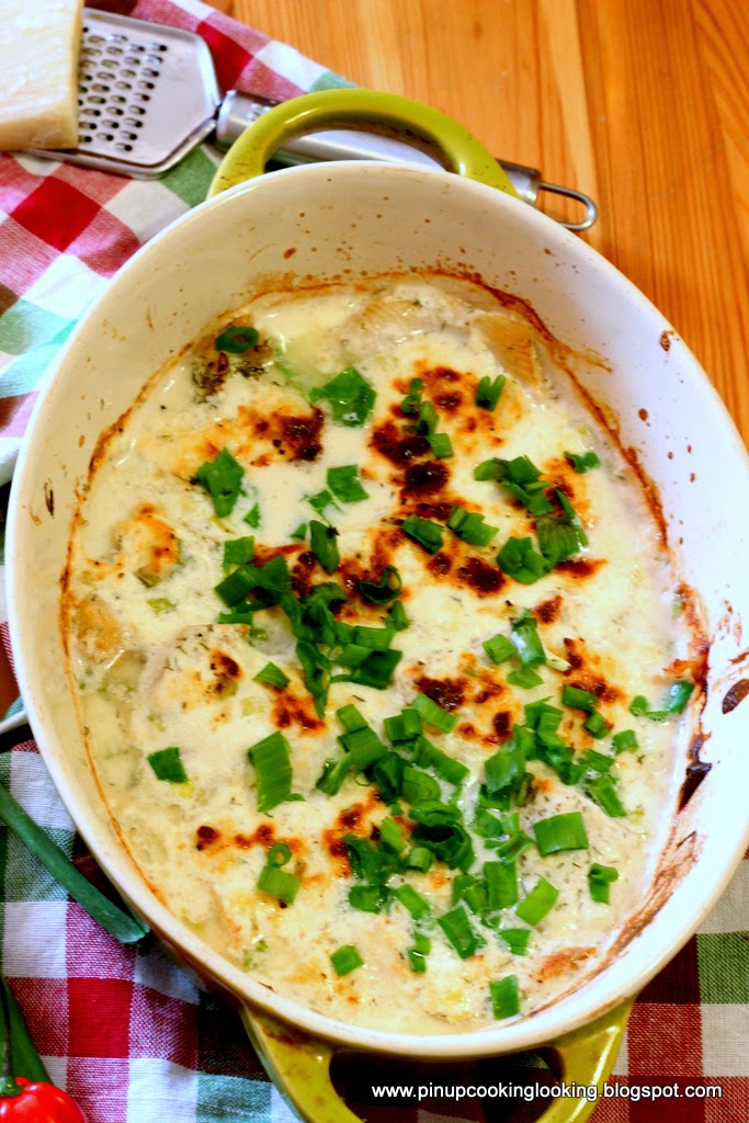 Wkładamy do rozgrzanego piekarnika i pieczemy około 30 minut, aż zrobi się pierzynka chrupiąca i lekko brązowa.