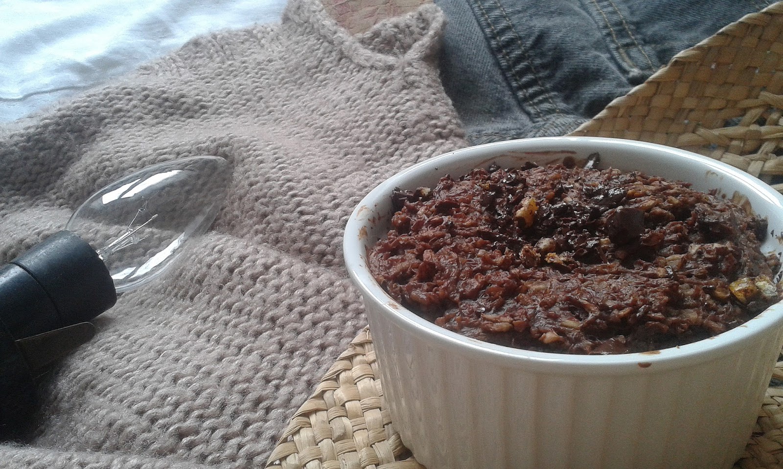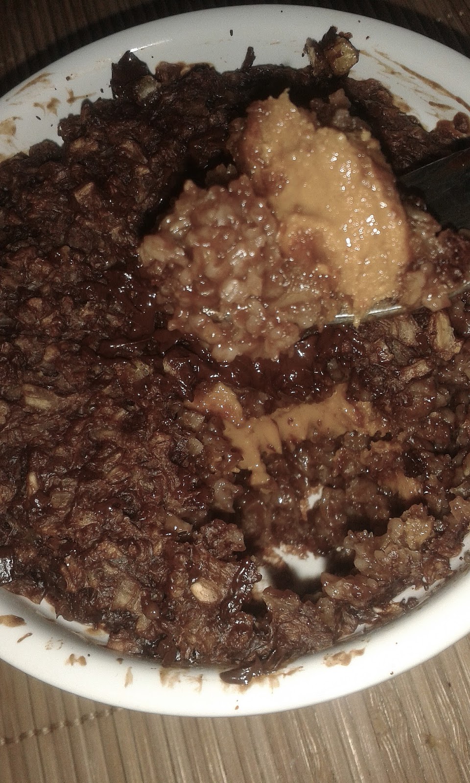 Chodzi o to, że chciałem upiec owsiankę, chciałem zrobić czekoladową owsiankę oraz chciałem wykorzystać masło orzechowe, by zrobić miejsce na to z Lidla. Podobno jest jednym z najlepszych.