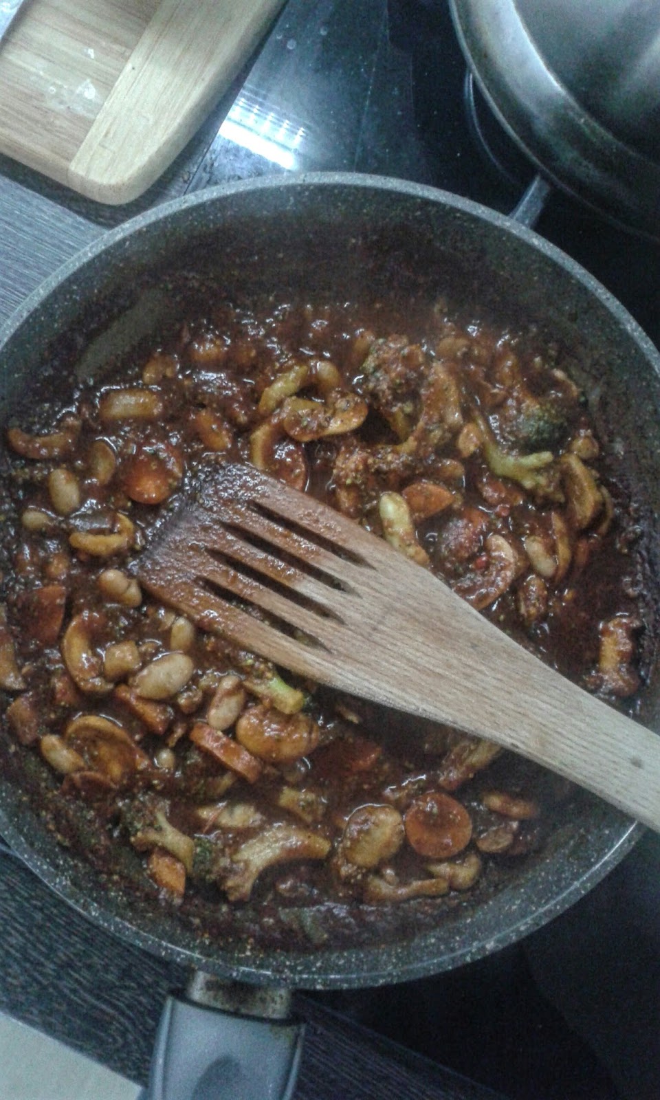 Pomidorowa potrawka(gulasz/śmietnik) z białej fasoli, pieczarek, cebuli, brokuła i marchewki