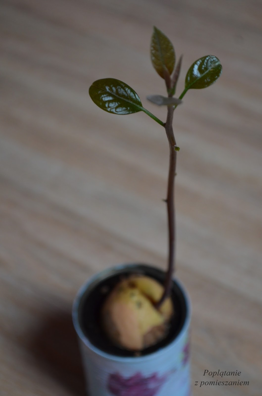 Nie wiem, które awokado zaskoczyło mnie bardziej. Chyba to młodsze. Ma większe listki niż starszy brat, a jest zdecydowanie mniejsze. Dziś ma ok. 30 cm.
