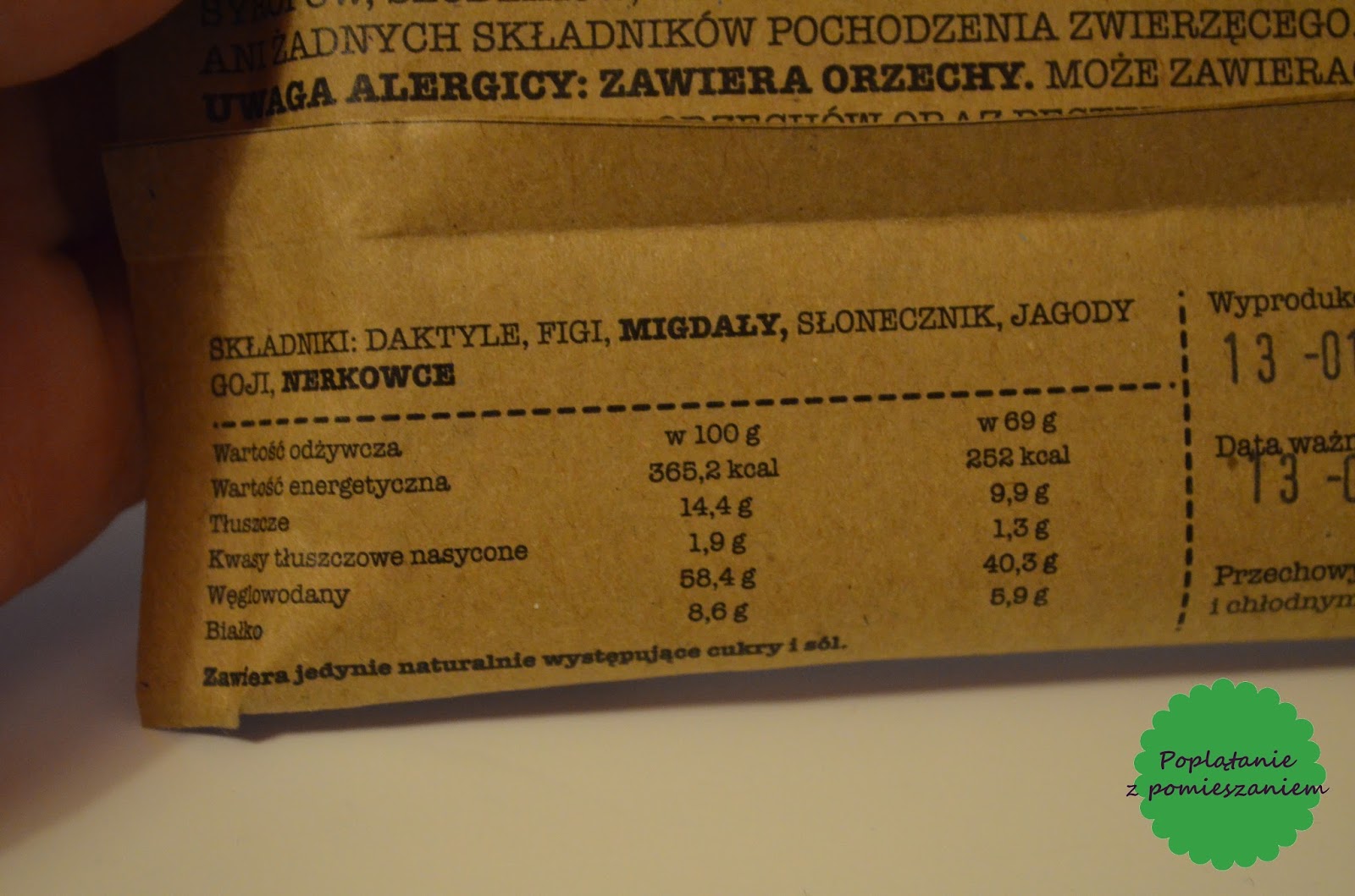 Moim zdaniem ten baton jest idealny wtedy, kiedy mamy ochotę na coś słodkiego. Lepiej sięgnąć po niego niż po "normalnego" batona. Tutaj w składzie mamy same naturalne składniki i wszystko jest jawne. Żadnych śmieciowych dodatków, polepszaczy smaku czy konserwantów.