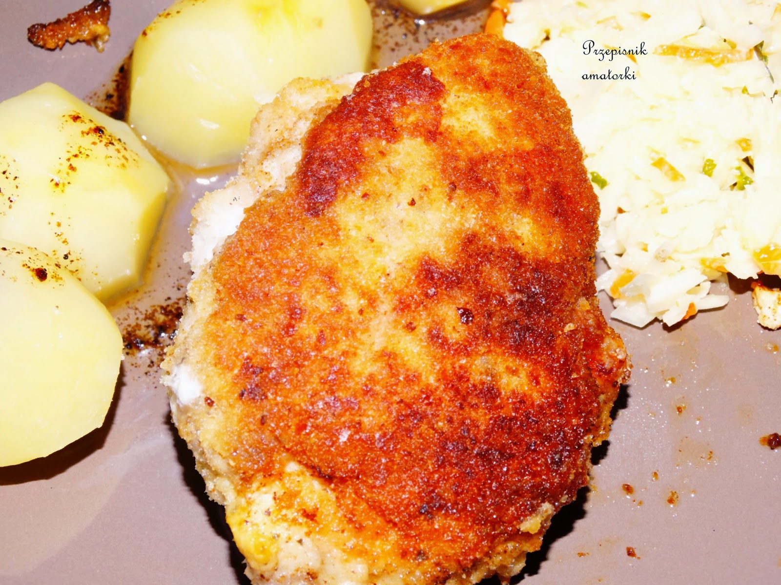 Mięso myjemy, pozbawiamy błonek, przekrawamy na mniejsze kawałki. Następnie rozbijamy na kotlety przez folię, aby uniknąć rozerwania delikatnego mięsa.