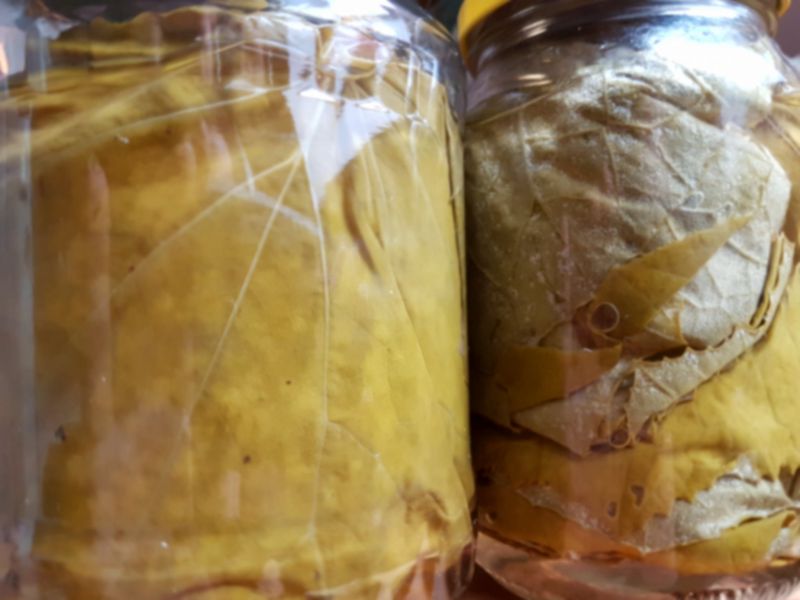 Zrolowane liście układamy w słoikach i zalewamy kwaśną zalewą z wody, soli i kwasku cytrynowego. Możemy również wsypać sól i kwasek bezpośrednio do słoików na liście i następnie zalać je wrzątkiem. Na litrowy słoik wystarczy pół łyżeczki kwasku i łyżeczka soli.