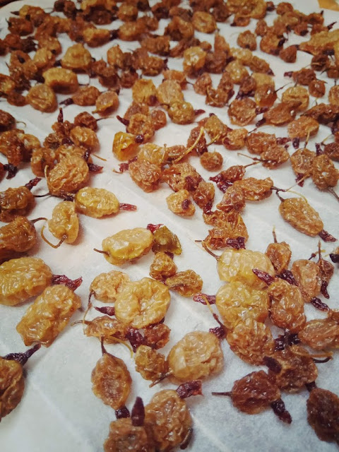Owoce wykładamy na papier lub kratkę i suszymy. Niecierpliwi mogą to zrobić w suszarce używając najsłabszego poziomu nawiewu lub w piekarniku włączając dmuchawę.