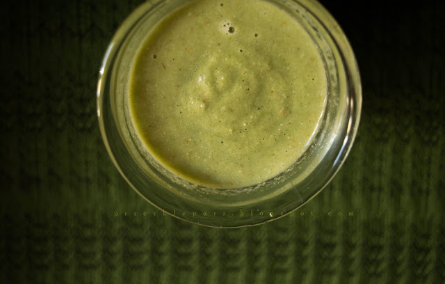 Wszystko do blendera, wziuum i gotowe. W razie zbyt gęstej konsystencji dodać więcej mięty.