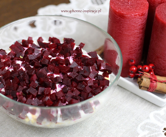 Śledź pod pierzynką z pieczonym burakiem Składniki: