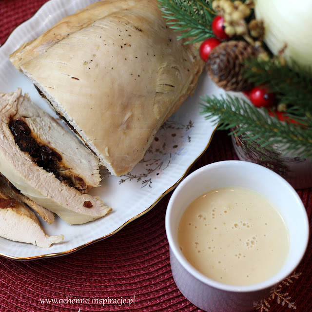 Indyk faszerowany owocami z białym sosemSkładniki:
