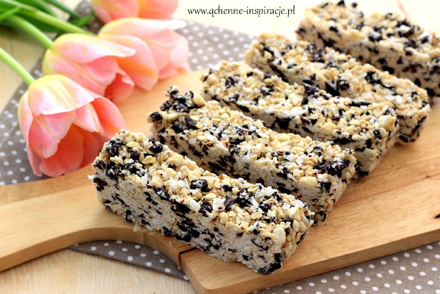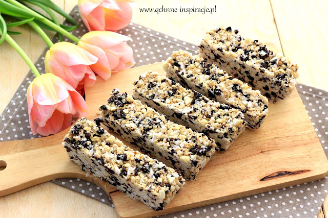 Batoniki robi się banalnie prosto. Po zrobieniu pakujemy je w papier śniadaniowy i zabieramy do szkoły, pracy, na delegację.