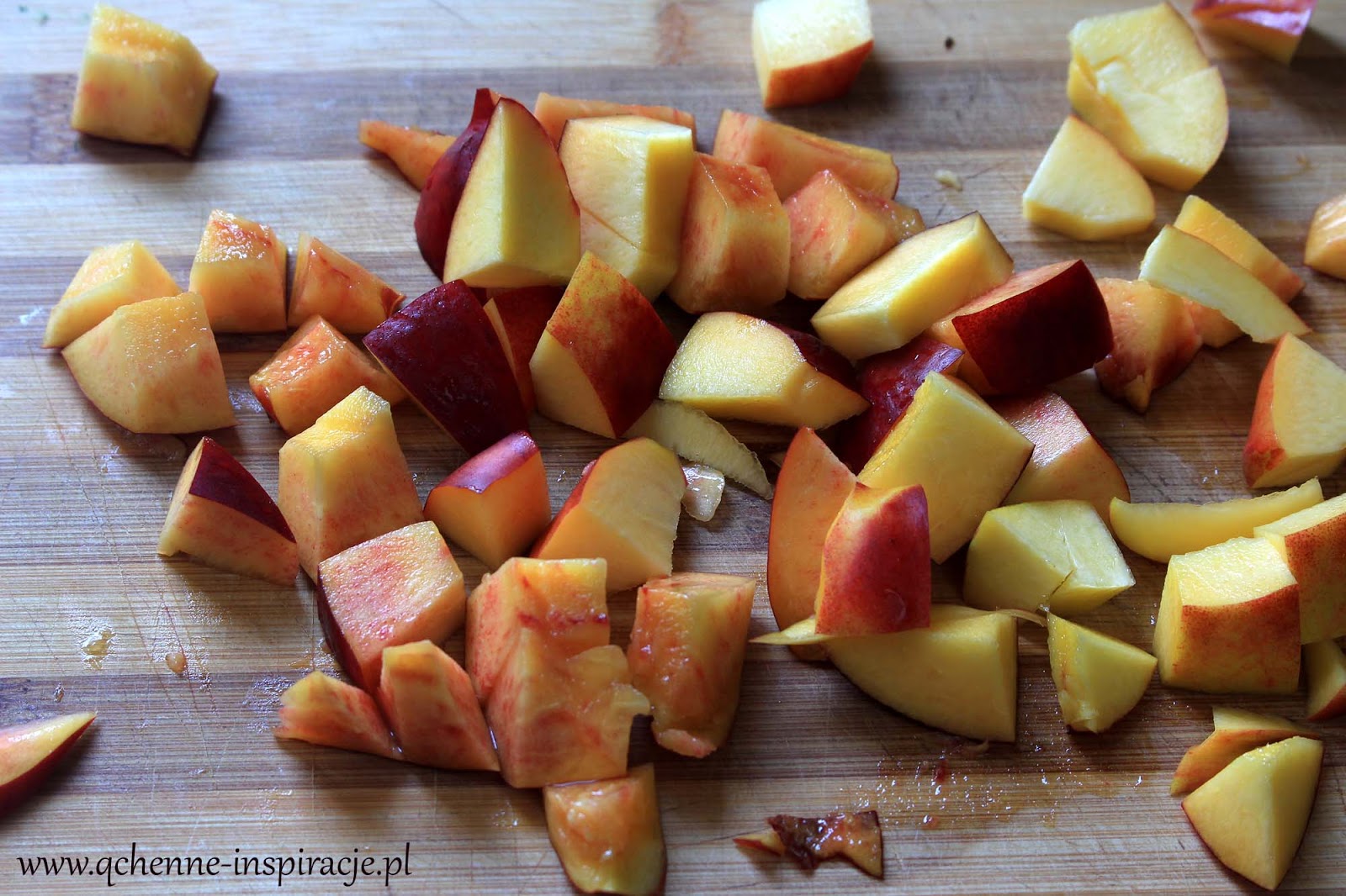 2. Nektarynki kroimy w kawałki. Dodajemy do kalafiora razem z pokrojonym w kawałki ananasem. Mieszamy.