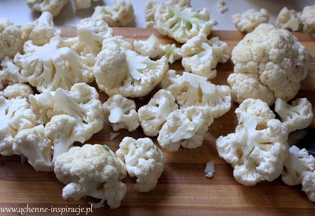 1. Piekarnik nagrzewamy do 200 stopni. Kalafiora dzielimy na różyczki, wkładamy do osolonego wrzątku. Gotujemy 8 minut po czym przekładamy do naczynia do zapiekania.