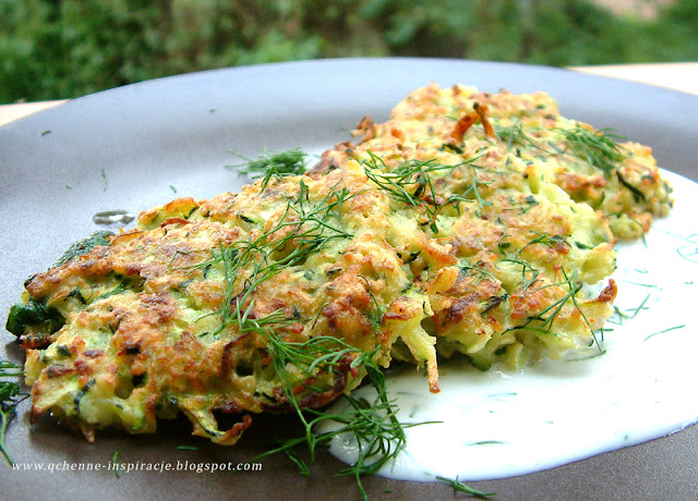 Dziś w roli głównej placek z cukinii czyli coś dobrze znanego, ale w nowej odsłonie. Po pierwsze cukinia jest starta na grubej tarce i odsączona, dzięki czemu nie musimy sypać tony mąki aby zagospodarować wodę która obficie z niej wycieka. Tej wody się pozbywamy. Placki z mąką w ilości tradycyjnej to guma. Dla mnie osobiście niejadalna i tyczy się to każdych placków, także ziemniaczanych.