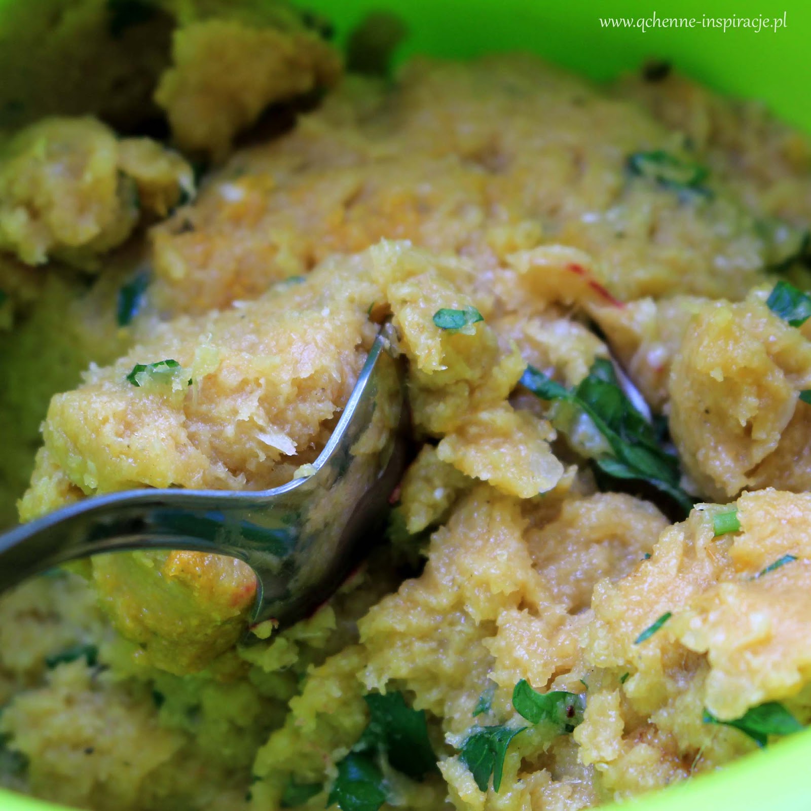 1. Płatki owsiane zalewamy wodą (do zakrycia), aby napęczniały. Mielimy w maszynce do mielenia mięsa razem z filetem z kurczaka i cebulą. Mieszamy z natką pietruszki, jajkiem, solą, kurkumą, papryką i pieprzem. Formujemy kuleczki, gotujemy na parze.
