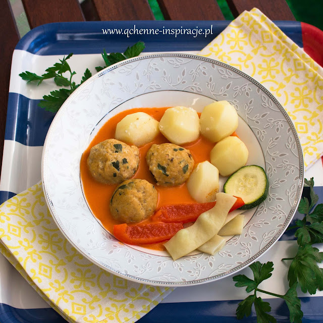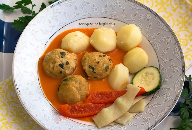 Dziś chcę Wam zaproponować danie dla dzieci. Delikatne drobiowe pulpeciki gotowane na parze, z sosem pomidorowym.
