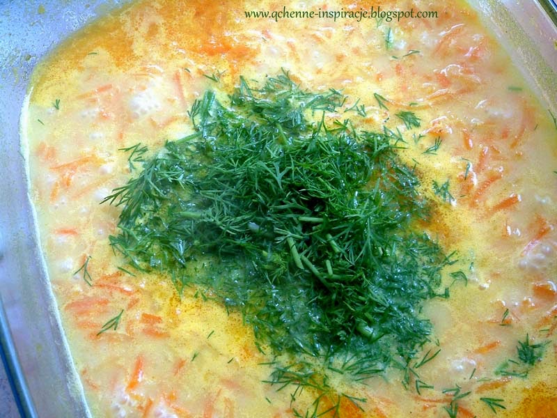Imbir i curry nadają ostrości i pikanterii, którą fantastycznie tonuje lekki, śmietankowy sos koperkowy na bazie duszonych warzyw i słodycz duszonej marchewki.