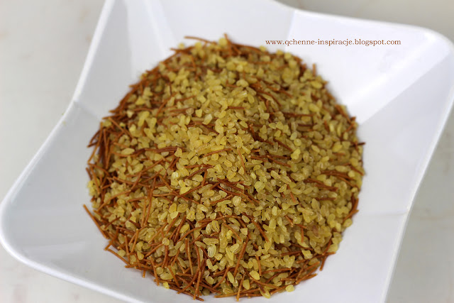 * 1,5 szklanki (standardowa szklanka o pojemności 250 ml) kaszy bulgur - ja użyłam kaszy bulgur z vermicelli czyli tycim makaronem