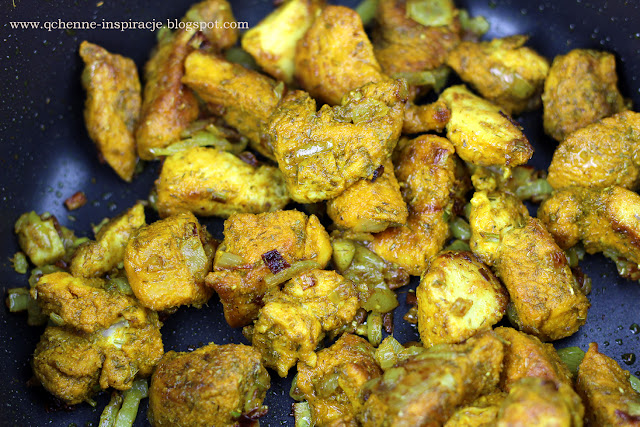 Kiedy komponowałam mieszankę przypraw finalnie użytą do tego dania, planowałam wykorzystać ją do innej, bezmięsnej potrawy. Jednak po spróbowaniu ostatecznego jej smaku wiedziałam że musi zostać wykorzystana do delikatnego mięsa, i do dania w stylu indyjskim, orientalnym.