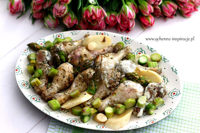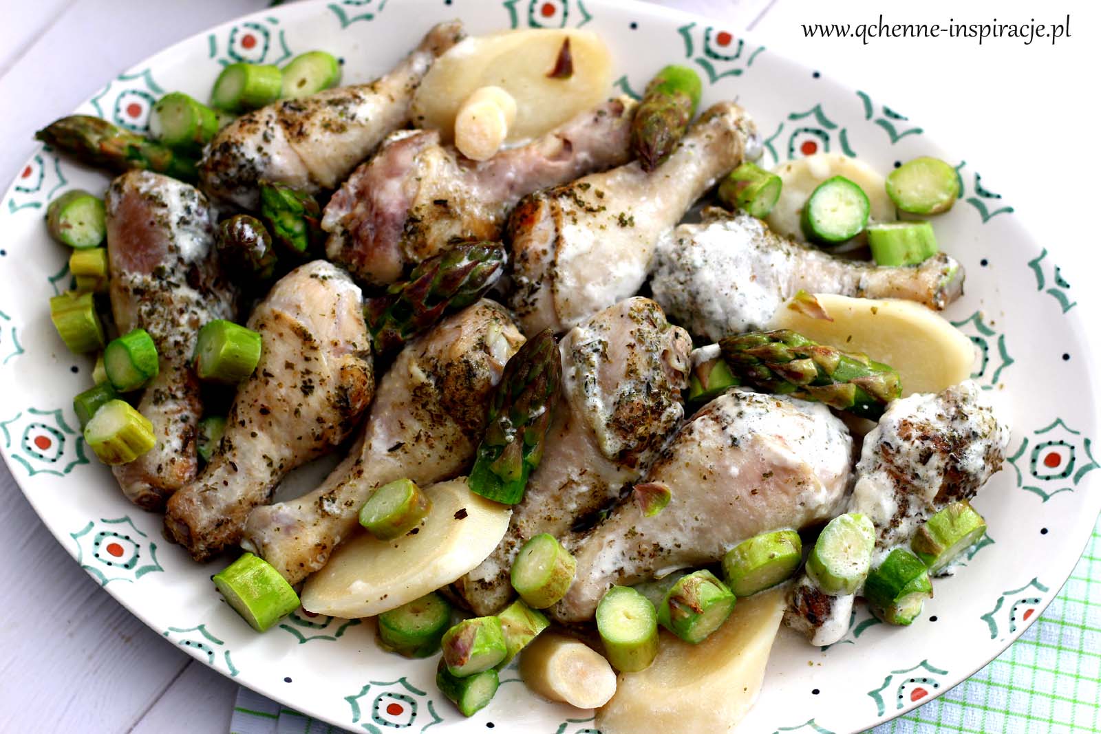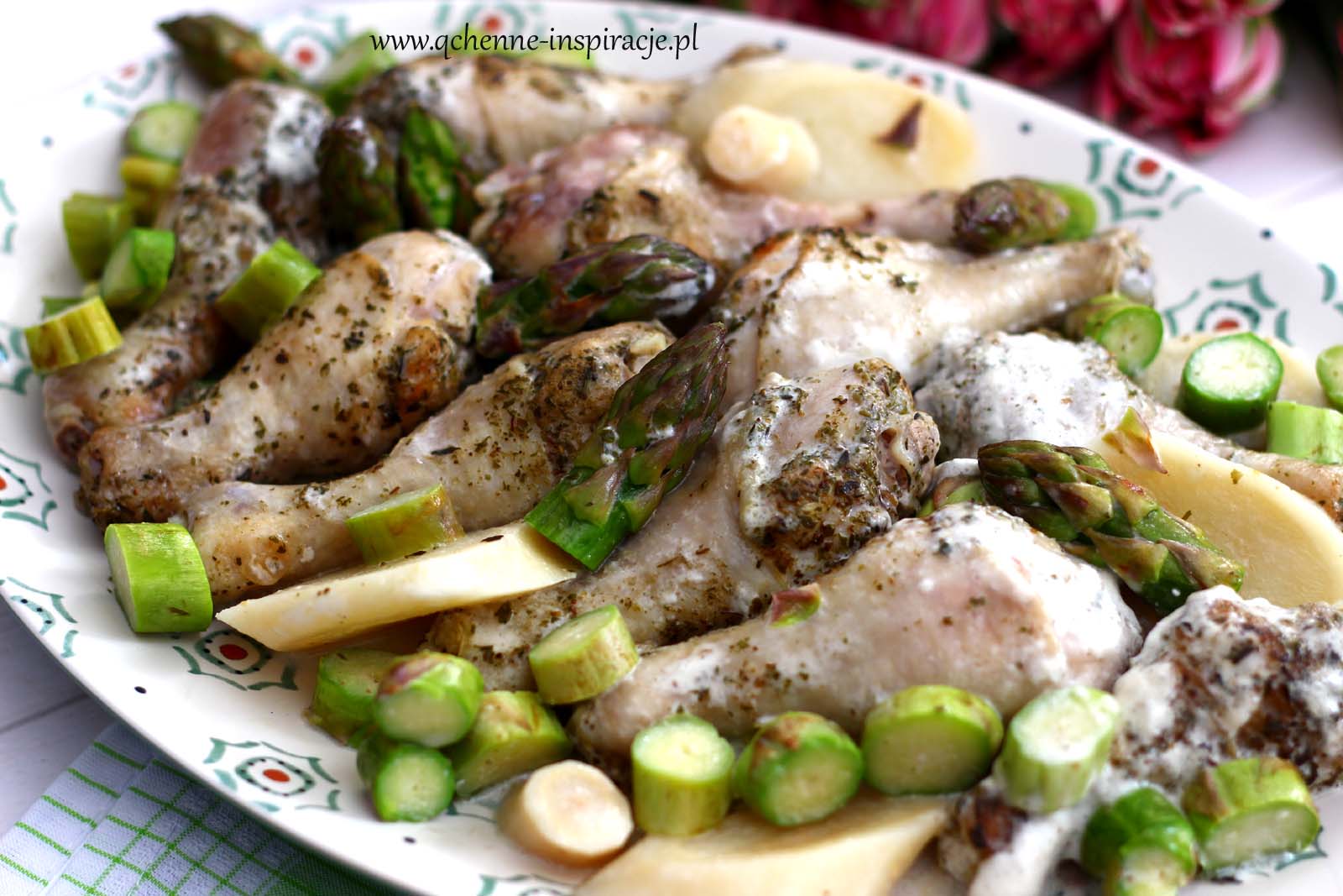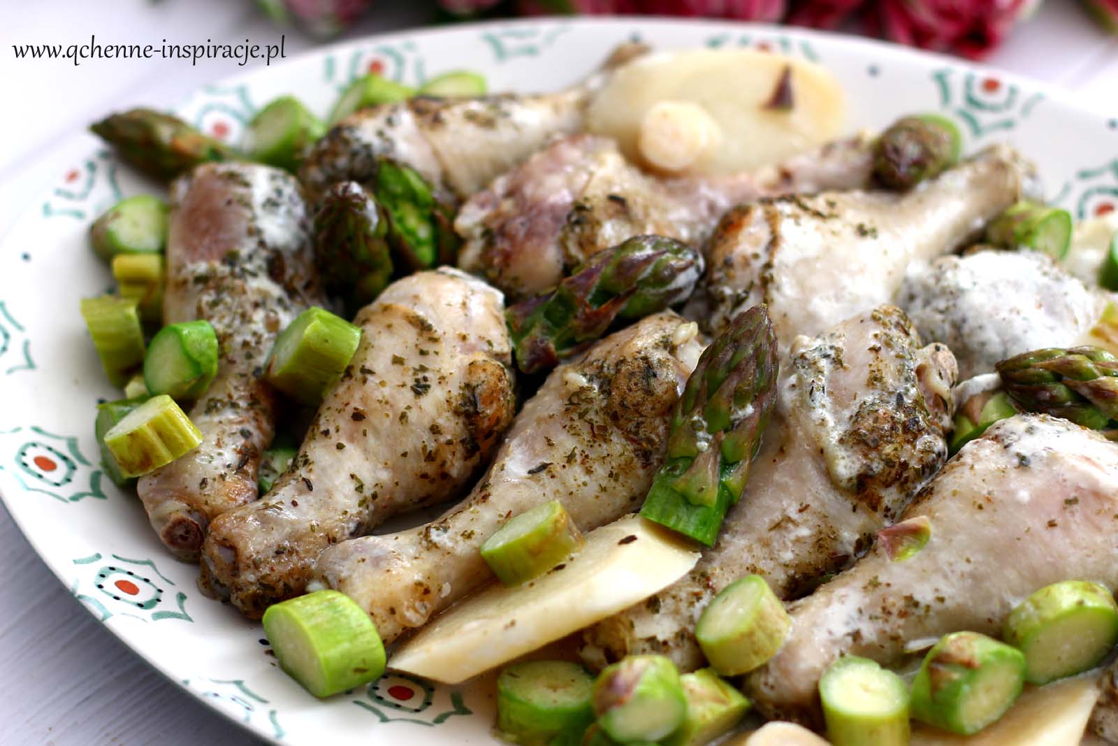 Duszony w mleku kokosowym kurczak staje się kruchy i delikatny.Charakteru dodają mu użyte do marynaty przyprawy i warzywne dodatki. Szparagi i słodki korzeń pietruszki.