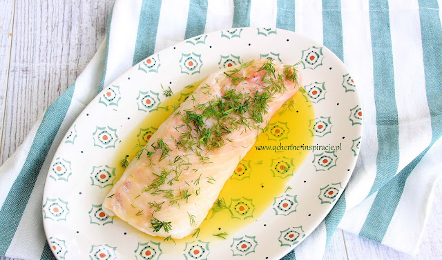 1. Rybę nacieramy solą i koperkiem. Zalewamy oliwą. Wstawiamy na godzinę do lodówki.