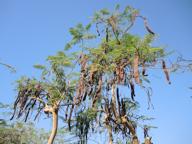 TU. Poniżej drzewo karobowe czyli szarańczyn strąkowy.
