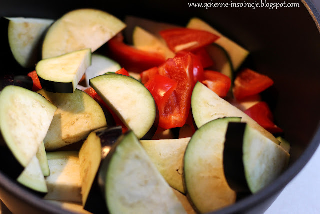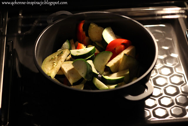 1. Warzywa kroimy w kawałki. Solimy, mieszamy z oliwą. Wstawiamy do piekarnika nagrzanego do 200 stopni na 40 minut.