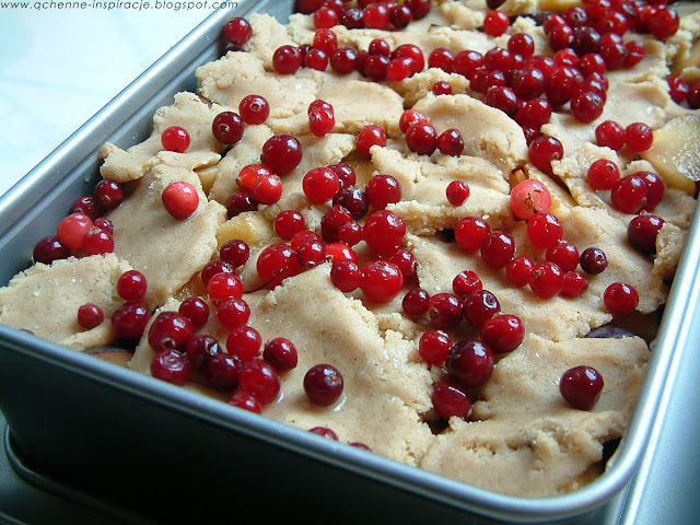 Kruche maślano - piernikowe ciasto z owocami wypełniając mój dom zapachem cynamonu, goździków, kakao i gałki muszkatołowej wprowadziło atmosferę która od razu poprawiła mi nastrój. Poczułam się jakby za chwile miała się zacząć Wigilia i ten niezwykły świąteczny czas. Brakowało mi jedynie choinki i światełek ;).