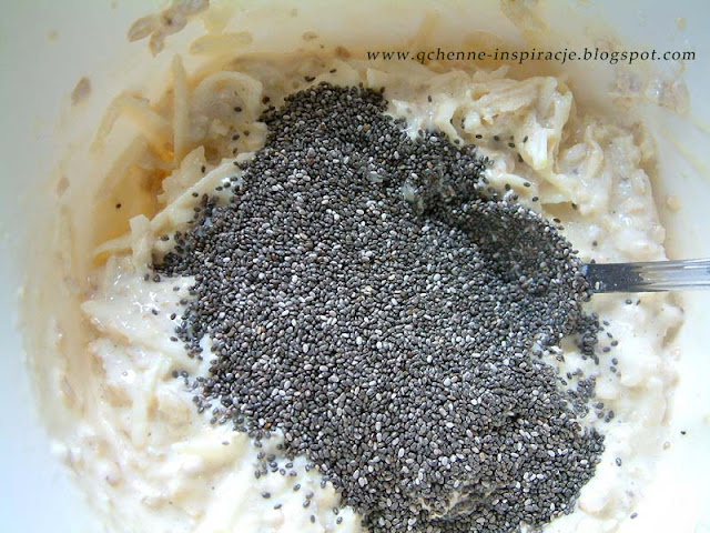 przeczytacie TU (klik). Szczególnie polecam je dla dzieci ponieważ są genialnym sposobem na przemycenie nasion Chia i płatków owsianych które są w nich niewyczuwalne do diety dziecka. Po przygotowaniu masy na placuszki odstawiamy ją na 10 minut i płatki pięknie pęcznieją. Nie ma możliwości aby dziecko które ich nie lubi zorientowało się że tam są ;)