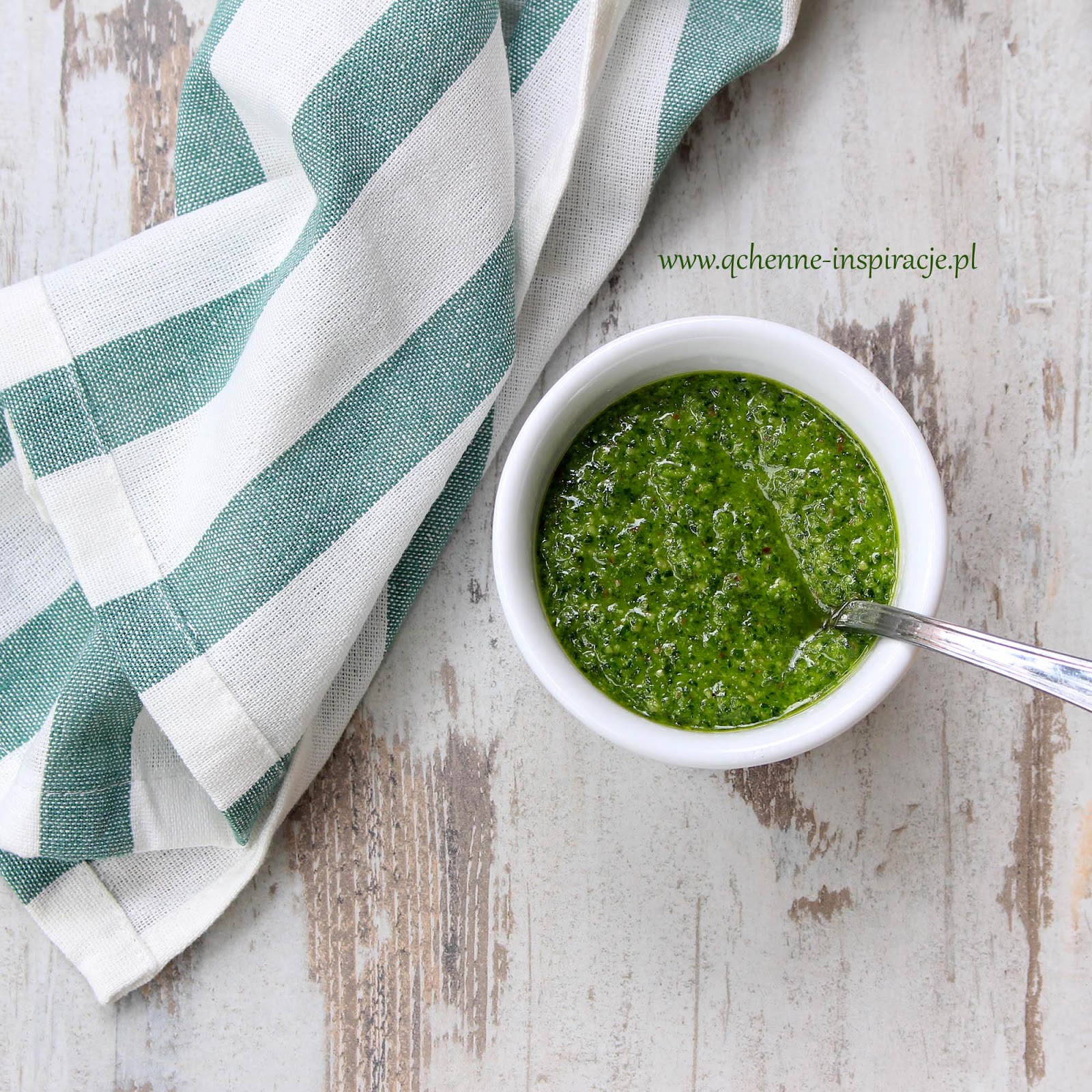 Jeśli pesto jest za gęste dolewamy oliwy.