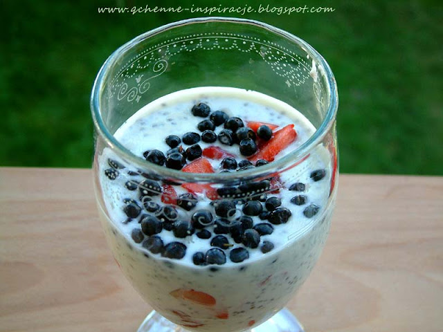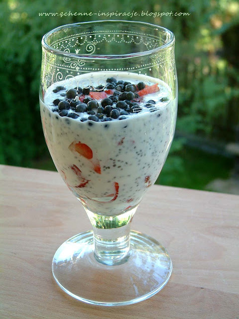 jogurtowe ptasie mleczko z nasionami chia i owocami (klik).Uwielbiam ten deser i szczerze Wam go polecam.