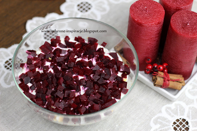 Kto z Was kiedykolwiek jadł pieczonego buraka zapewne wie dlaczego go tu dodałam. Przełamuje on słoność śledzi i ostrość pora. Wszystkie smaki pięknie się ze sobą komponują.