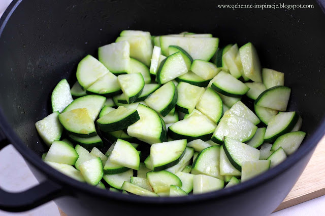 2. Cukinię kroimy w półtalarki i szklimy na klarowanym maśle.