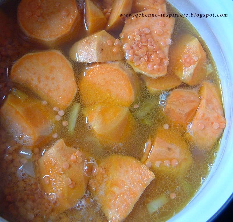Genialnie rozgrzewa i doskonale syci. Połączenie soczewicy którą wszyscy w domu uwielbiamy, ze słodkimi ziemniakami, papryczką chili i słodko - ostrym imbirem okazało się strzałem w dziesiątkę.