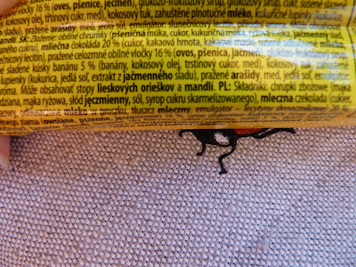 Smak: Zapach jest strasznie sztuczny, strasznie słodki i lekko odpychający. Nie ma nic gorszego niż smak i zapach sztucznego banana (np:. Mullermilk bananowy). Jednak nie chciałam oceniać batonika po samym wyglądzie...