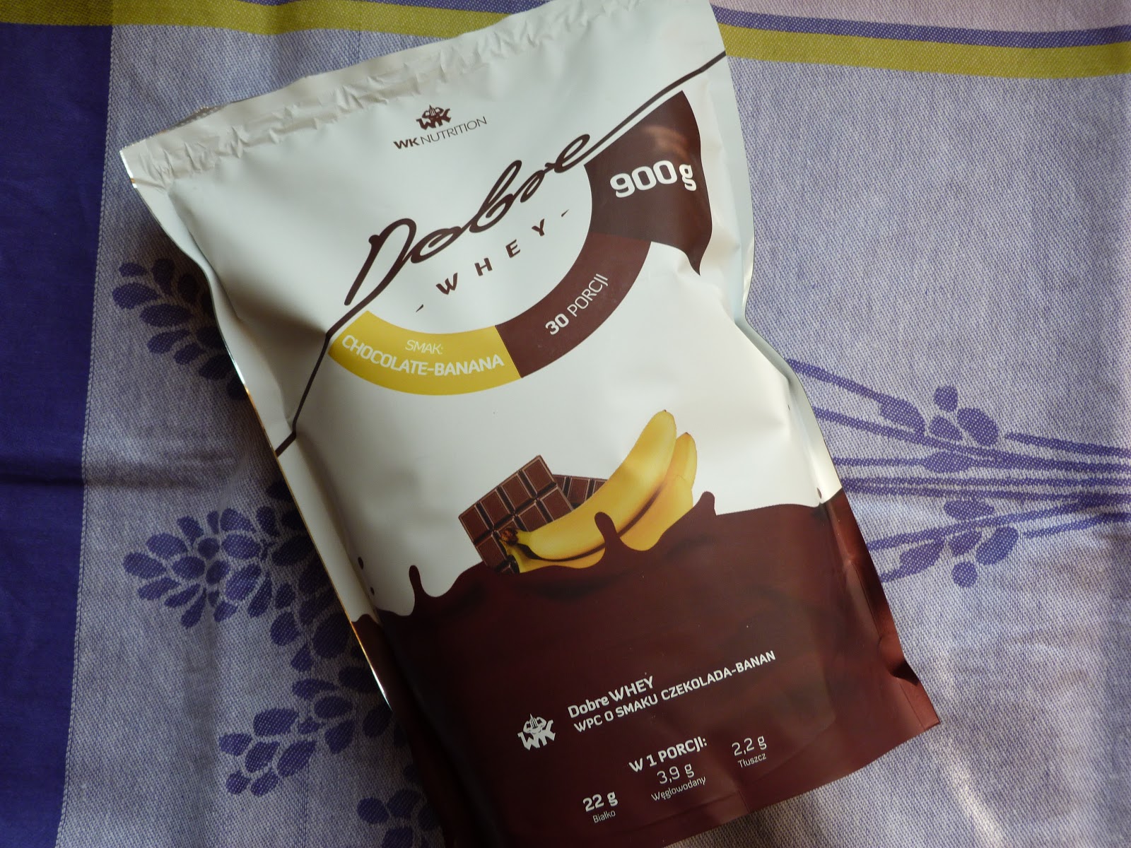 Wygląd i smak: Jak już pisałam we wstępie, nie ufam rzeczom o smaku banan, bo z reguły wypadają one bardzo blado. Jednak to białko tak bardzo mnie korciło, że mu uległam i kupiłam 900 g opakowanie totalnie w ciemno i zaryzykowałam grube pieniądze ;) Dostawa u chłopaków z WK jest błyskawiczna, bo na drugi dzień mogłam cieszyć się swoim białkiem i jak najszybciej zabrać się za testy!