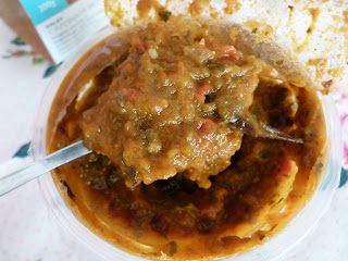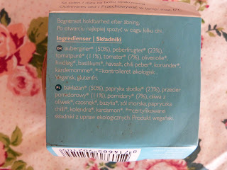 Wygląd i smak: Powiem Wam, że do tego cudeńka podchodziłam jak pies do jeża. Nigdy nie jadłam caponaty i nie wiedziałam, co dokładnie może mnie czekać. Pomidory to kontrowersyjne dla mnie warzywo, bo na surowo nie potrafię go przełknąć, ale już przerobione mi smakuje...jednak! Tutaj jest przerobione, ale nie wiadomo czy taka postać by mi smakowała. Po głębszym przewertowaniu składu zauważyłam, że głównym składnikiem (bo aż 50%!) jest tu bakłażan, którego lubię :) Pomidor dopiero pojawia się na 3 miejscu i to w formie przecieru! No to co? Jem!