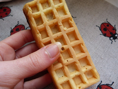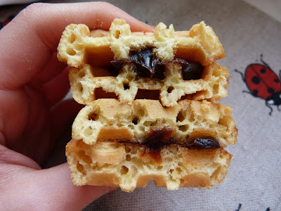 W środku 2 mini gofry, a pomiędzy nimi krem...smacznie?