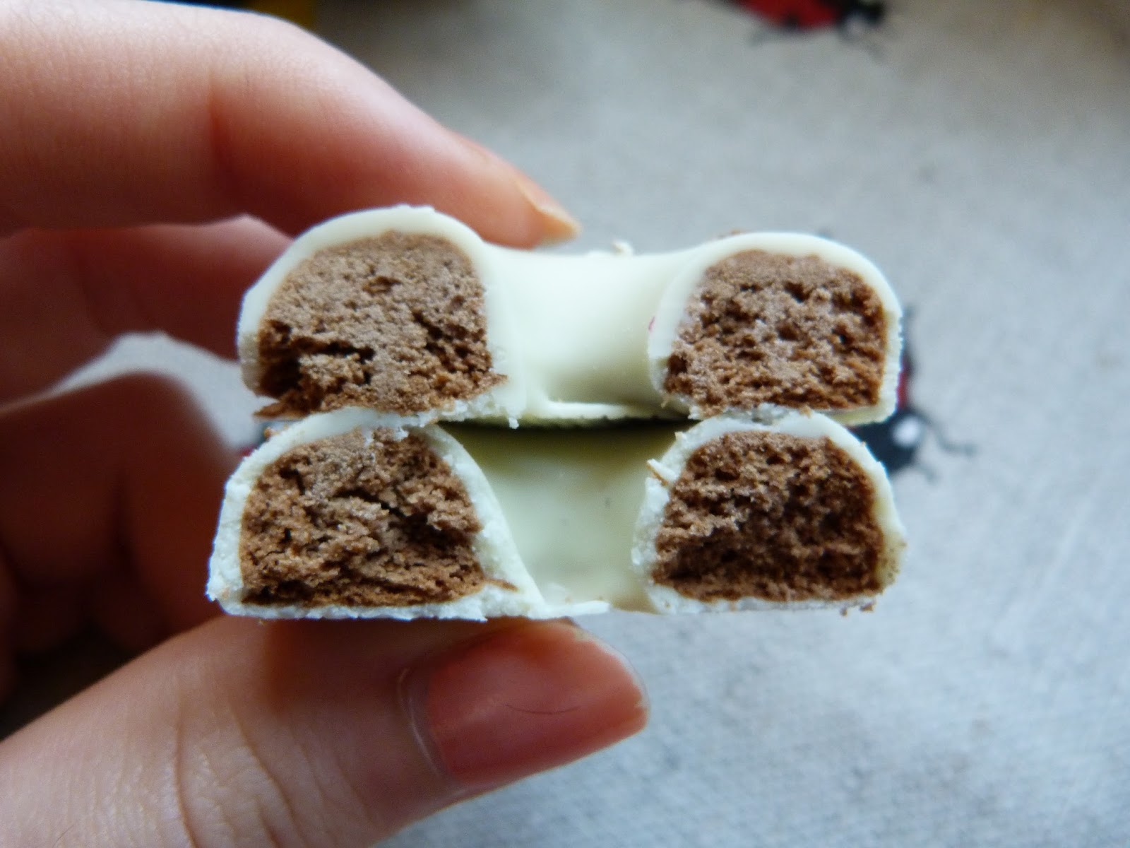 Polewa, bo czekoladą trudno mi to nazwać, smakuje identycznie jak w białym Lionie. Dla jednych może być to piekielnie słodkie, a dla innych pyszne ;) Ja zaliczam się do osób, które białego Liona bardzo lubią więc mnie ciasteczka nawet smakują ;) W środku są kruche, bardzo kruche i dobrze wypieczone...ogólnie fajne ciastka, ale te w czekoladzie deserowej bardziej mi smakowały.