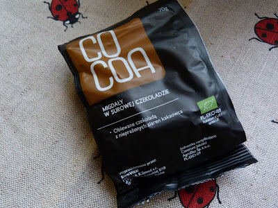 Jeśli dziś nie zaaplikuję sobie coś iście kakaowego to zwariuję! Wahania ciśnienia rozsadzają mi dosłownie głowę, a więc jestem prawie nie żywa :( Ale czekolada potrafi dobrze dodać kopa, a że mnie nagle wzięła na nią ochota to korzystam! Dziś padło na migdały w surowej czekoladzie, które chciałam spróbować od dawna :) Kocham migdały, kocham surową czekoladę, a więc nie mogło być nie smacznie :)