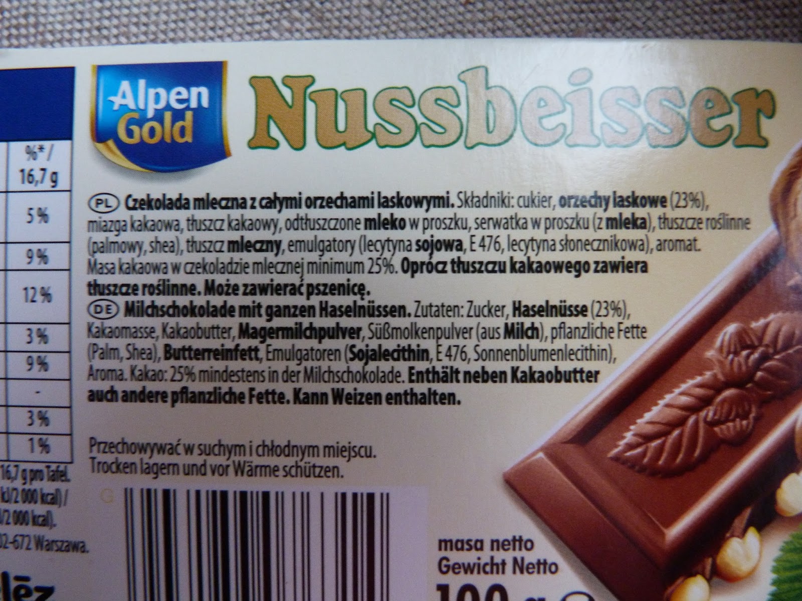 Alpen Gold Nussbeisser, a raczej słynna czekolada ''z okienkiem'' - któż jej nie zna? To chyba jedna z najpopularniejszych czekolad w Polsce i chyba jedna z najbardziej lubianych. Nie znam osoby, która nie lubiłaby tej tabliczki (no za wyjątkiem osób nie lubiących orzechów :P). To chyba jedyna czekolada z Alpen Gold, która jest warta zakupu i, którą na prawdę lubię. Jesteście ciekawi dokładniejszego opisu? Zapraszam! :)