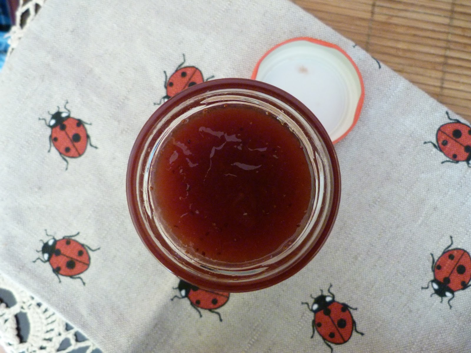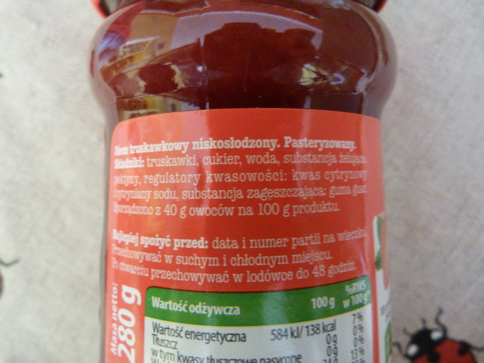 Po otwarciu słoiczka przeżyłam lekki szok, bo dostałam czerwoną galaretkę, a nie dżem. Nawet zapach był nijaki, sztuczny i przesłodzony. Konsystencja wołała o pomstę do nieba, bo do prawdziwego dżemu było jej bardzo daleko. Nic innego nie przychodzi mi na myśl, jak rozwodniona galaretka ze zbyt dużą ilością wody. Smak? Tfu! Nie da się praktycznie jeść. Normalnie czuć tam wodę, cukier i coś a'la landynkowo-truskawkowego. Tak paskudnego dżemu chyba jeszcze nigdy nie jadłam, a produkt nadawał się tylko do nasączenia i przełożenia ciasta. Kawałki owoców? Chyba żarty...porażka na całej linii! Nie polecam.
