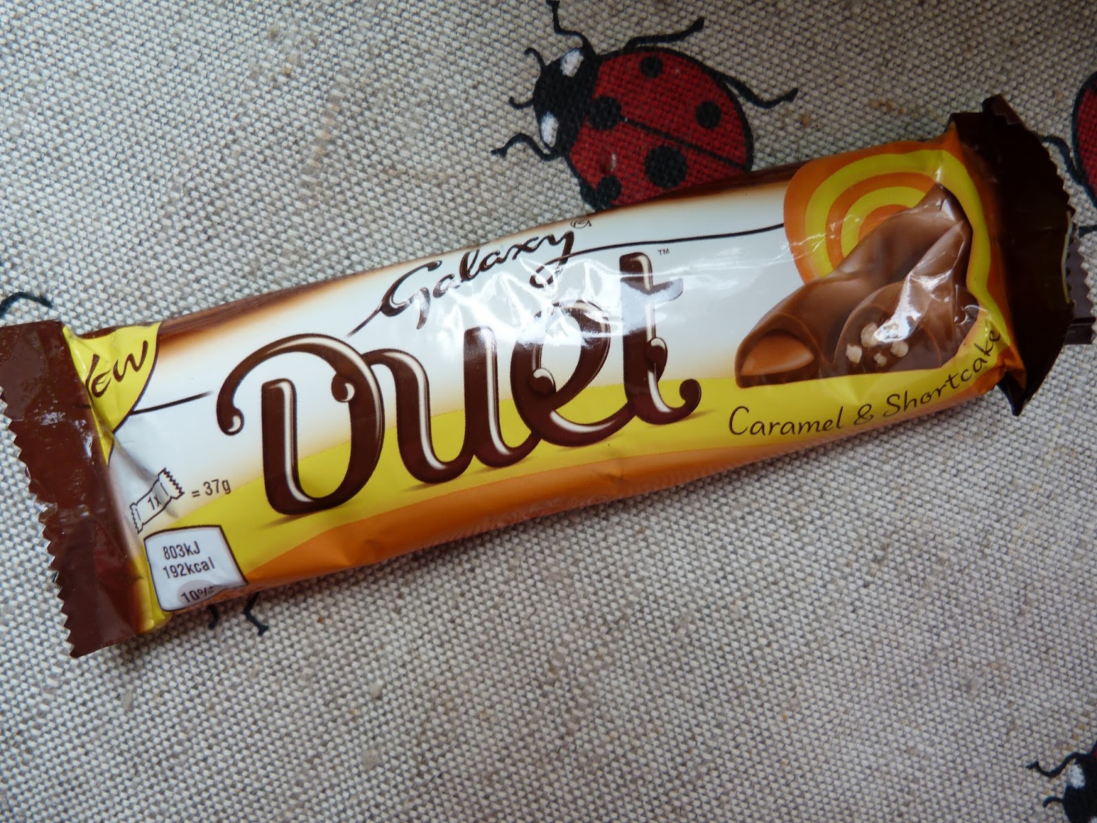 Wygląd i smak: Niestety nie mam zdjęcia całego batonika, bo przyleciał on do mnie BARDZO zmasakrowany. Właściwie ciężko było to nazwać batonikiem, ale jakoś udało się go zjeść ;) W każdym razie były to dwa paluszki (a'la w Twix) połączone ze sobą. W jednym paluszku znajdował się karmel, a w drugim kawałki słynnych angielskich ciasteczek shortcake. Połączenie smakowe wydawało mi się GENIALNE, bo ciasteczka te uwielbiam, a i dobry karmel może mnie oczarować, ale niestety się przeliczyłam. Zacznę od zapachu, który już po samym otwarciu doprowadza do cukrzycy. Był tak słodki, że bałam się cokolwiek ruszać i od razu chciałam oddać to czekoladowe cudo siostrze. Jednak przełamałam się i spróbowałam - efekt? Cukrzyca :D Czekolada bardzo dobra, słodka i mocno mleczna. Ja osobiście czekoladę Galaxy bardzo lubię, ale tutaj mnie przerosła. Paluszek z karmelem okazał się dla mnie niejadalny. Cukier w cukrze powiadam! Karmel ciągnął się strasznie, był lekko płynny, margarynowy i okropny. Razem ze słodką czekoladą dla mnie niezjadliwy. Całą sytuację uratował drugi paluszek, bo okazał się zwykłą mleczną czekoladą Galaxy i ''czymś'' chrupiącym, bo smaku ciasteczek shortcake tam kompletnie nie wyczułam. Cóż, zawiodłam się i spisuję tego batonika do produktów bardzo słabych. Osobiście nie polecam ;)