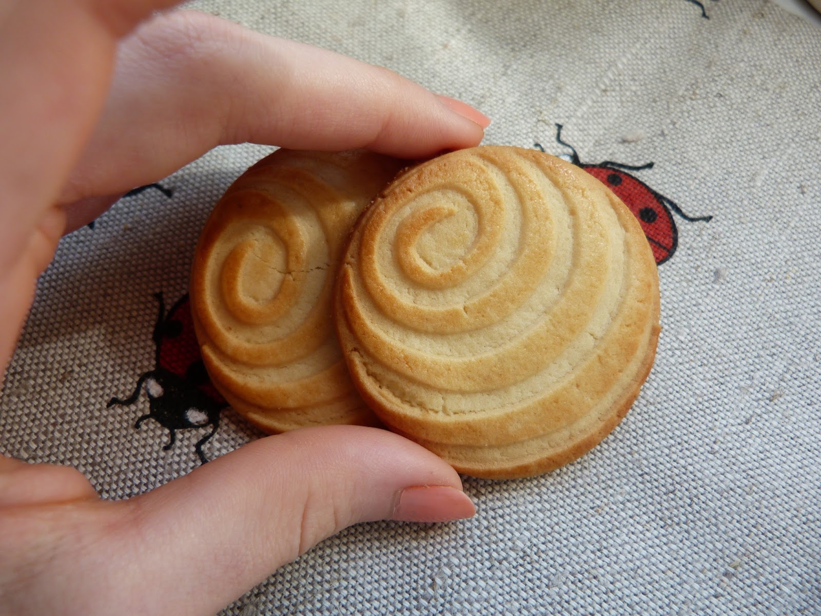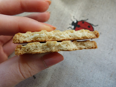 Ciasteczka są dosyć cienkie i płaskie, a po dłuższym trzymaniu ich w ręku pozostaje nam tłusty osad. Cóż...ciastka maślane, więc masełko robi swoje. Herbatniki są chrupkie, ale nie kruszą się, co bardzo mi się podoba. Dla mnie nie ma nic gorszego niż rozwalające się ciastko po całym pokoju, brrrryy.