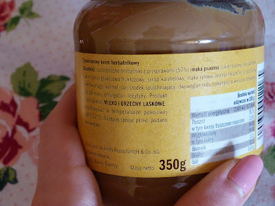 Szybko nabrałam go na łyżeczkę, zachwycałam się niezwykłą, kremową konsystencją i szybko zjadłam. Efekty? Pyszne! Ale strasznie mulące i słodkie :) Nie da się moim zdaniem zjeść więcej niż 2 łyżeczki. Krem jest tłusty, niezwykle korzenny i pyszny. Mogliby go bardziej doprawić przyprawą korzenną, ale nie każdy lubi tak intensywne smaki. Ogólnie pyszny, ale bardzo słodki - polecam jako słodki dodatek do owsianki/kaszki/placków, bo jakoś do chleba nie bardzo pasuje ;)